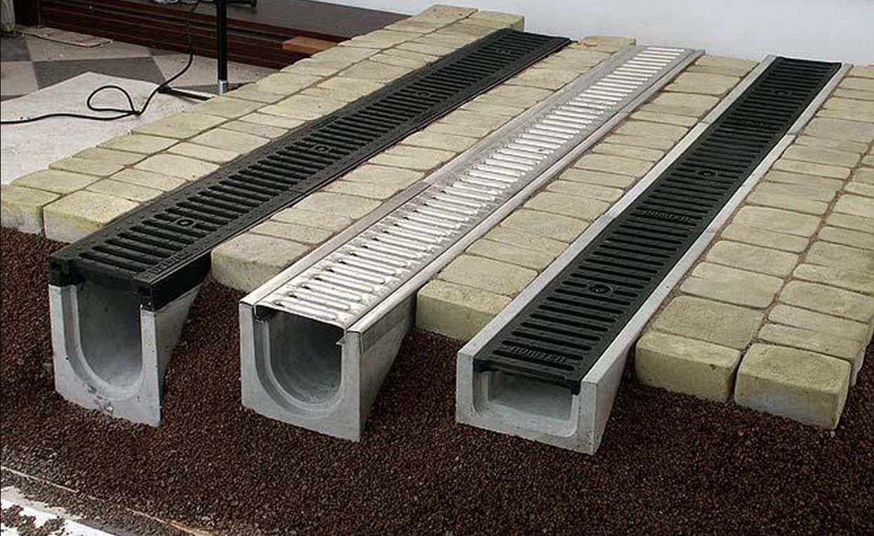 - Пластиковые лотки (полипропилен, полипропилен, ПВХ) — легкие, простой монтаж, хорошая коррозионная стойкость; подойдут для пешеходных зон и мест малой и средней пропускной способности.
